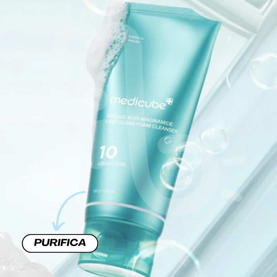 Descubre una limpieza transformadora con el Deep Cleanser de Medicube, una fórmula avanzada que combina Ácido Azelaico puro al 99% con 2% de Niacinamida para tratar poros obstruidos, textura irregular, pigmentación y exceso de grasa sin irritar. Su textura única similar a una goma suave se adhiere perfectamente a la piel y se transforma en una espuma rica y cremosa que elimina impurezas, residuos de maquillaje y exceso de sebo sin resecar.