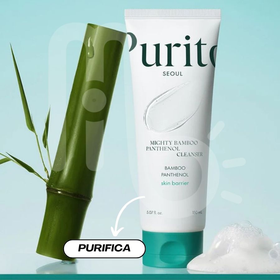 El PURITO Mighty Bamboo Panthenol Cleanser es un limpiador en gel de uso diario diseñado para eliminar eficazmente el exceso de grasa, residuos y partículas contaminantes sin alterar la barrera natural de la piel. Su fórmula de pH bajo ayuda a mantener el equilibrio cutáneo, reduciendo el riesgo de sensibilidad, sequedad o irritación después de la limpieza.